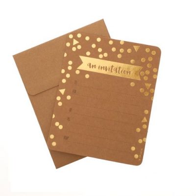 Invitations ~ Kraft & Foil Confetti are a stylish invitation featuring gold foil confetti and typography printed on a matt kraft card. Each invitation comes with a coordinating kraft brown envelope. They are perfect for a range of events and we love this as a ready-to-go wedding invitation option!