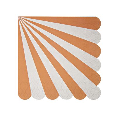 Paper Napkins ~ Toot Sweet Orange are a stylish serviette with radial orange and white stripes and a scallop edge. They are a lovely option for many party themes and perfect for a party using citrus tones.